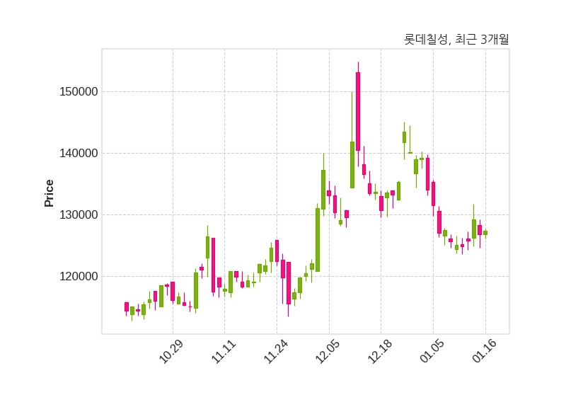 한편, 롯데칠성음료의 09시 53분 현재주가는 127,300원으로 직전 거래일 대비 500원(+0.39%) 상승이며, 거래량은 3,542주이다.