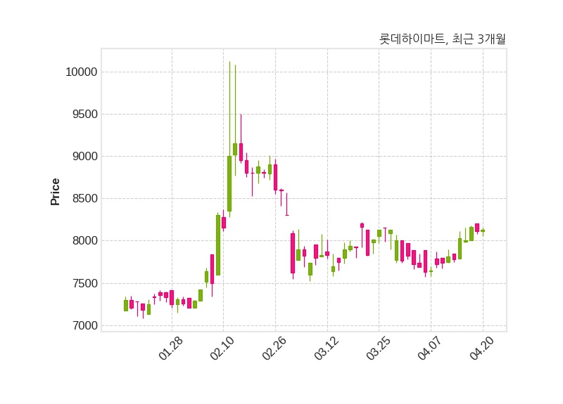 한편, 롯데하이마트는 장 마감 이후 해당 기업공시를 발표했으며 오늘 종가가 8,130원, 거래량은 14,036주로, 직전 거래일 대비 20원(+0.25%) 상승했다.