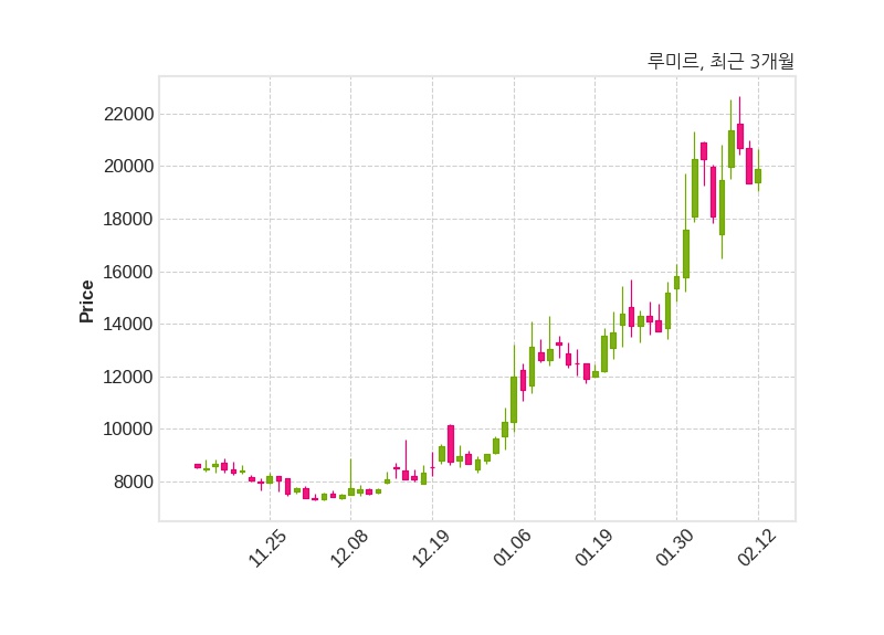 한편, 루미르의 09시 49분 현재주가는 19,900원으로 직전 거래일 대비 550원(+2.84%) 상승이며, 거래량은 587,950주이다.