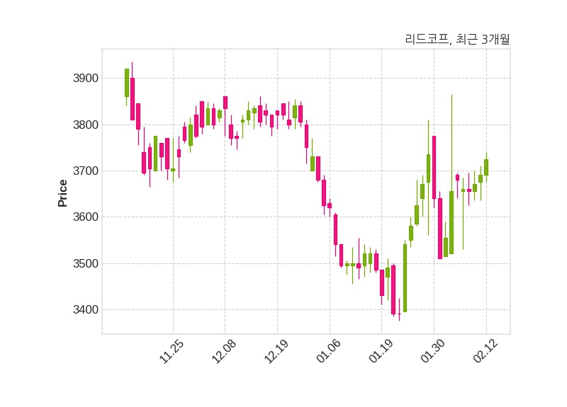 한편, 리드코프는 장 마감 이후 해당 기업공시를 발표했으며 오늘 종가가 3,725원, 거래량은 58,942주로, 직전 거래일 대비 35원(+0.95%) 상승했다.