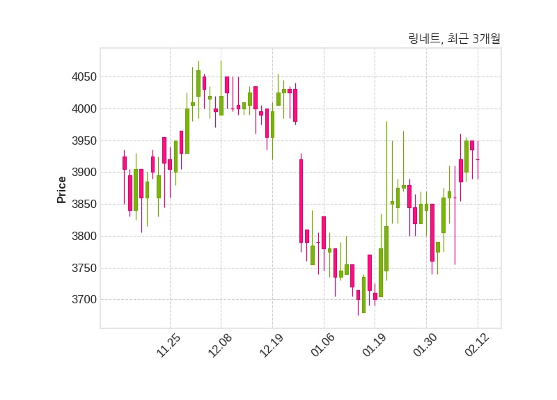 한편, 링네트는 장 마감 이후 해당 기업공시를 발표했으며 오늘 종가가 3,920원, 거래량은 102,276주로, 직전 거래일 대비 15원(-0.38%) 하락했다.