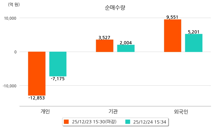 투자자별 동향을 살펴보면 기관은 2,004억 원 순매수했으며, 외국인은 5,201억 원 순매수했다. 개인은 7,175억 원 순매도했다.