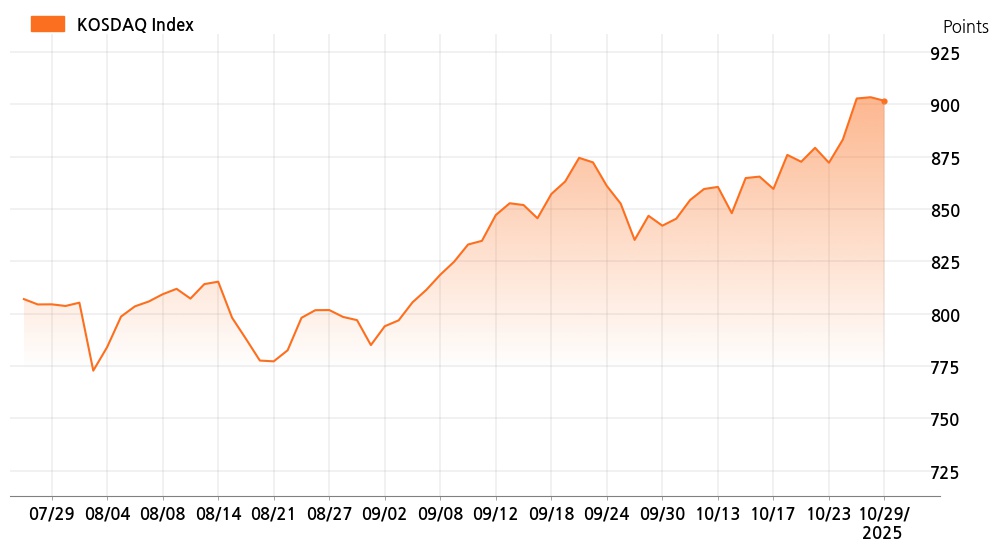 29일 오후 3시 코스닥(901.59p, 1.71p, -0.19%)는 기관 매도가 늘면서 하락세를 보이고 있다.