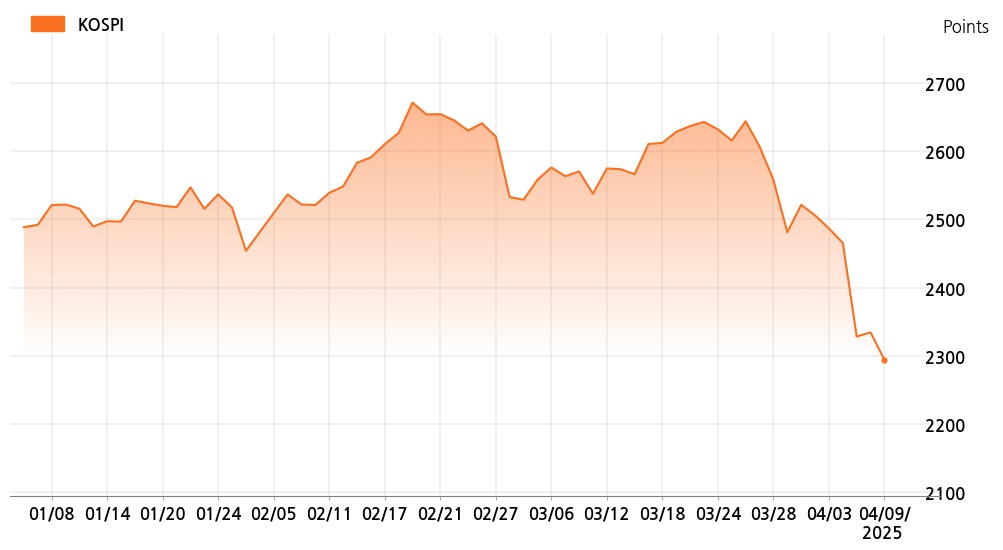 9일 오후 3시 코스피(2,293.70p, 40.53p, -1.74%)는 외국인 매도가 늘면서 하락세를 보이고 있다.