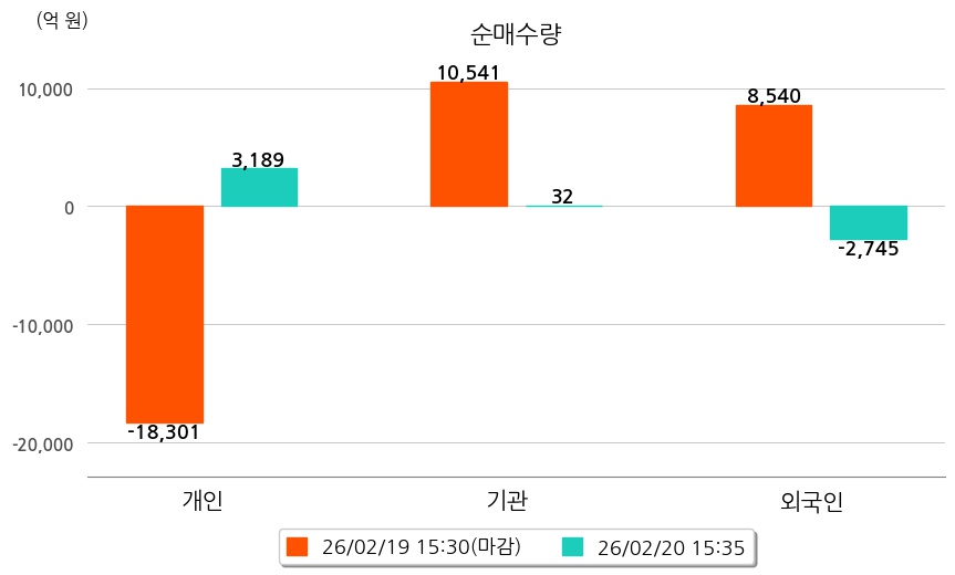 투자자별 동향을 살펴보면 기관은 32억 원 순매수했으며, 외국인은 2,745억 원 순매도했다. 개인은 3,189억 원 순매수했다.