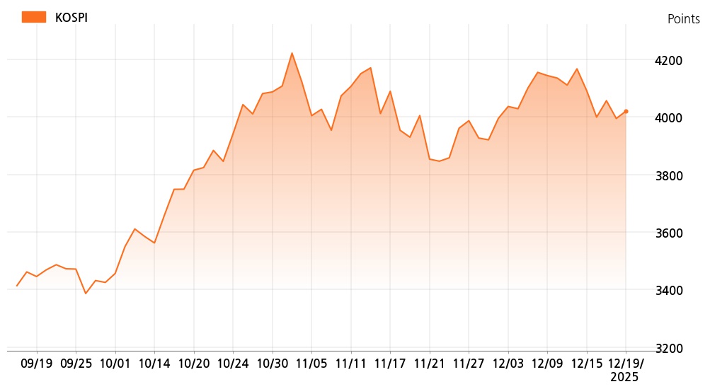 19일 오후 3시 코스피(4,020.55p, 26.04p, +0.65%)는 기관 매수가 늘면서 상승세를 보이고 있다.