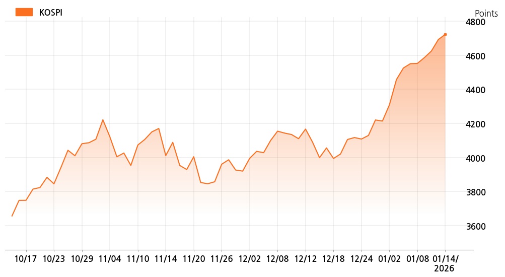 14일 오후 3시 코스피(4,723.10p, 30.46p, +0.65%)는 기관 매수가 늘면서 상승세를 보이고 있다.