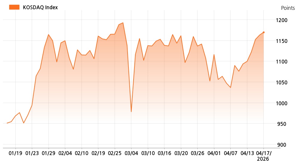 17일 오후 3시 코스닥(1,170.04p, 7.07p, +0.61%)는 외국인 매수가 늘면서 상승세를 보이고 있다.
