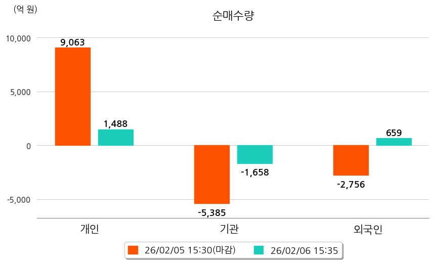 투자자별 동향을 살펴보면 기관은 1,658억 원 순매도했으며, 외국인은 659억 원 순매수했다. 개인은 1,488억 원 순매수했다.