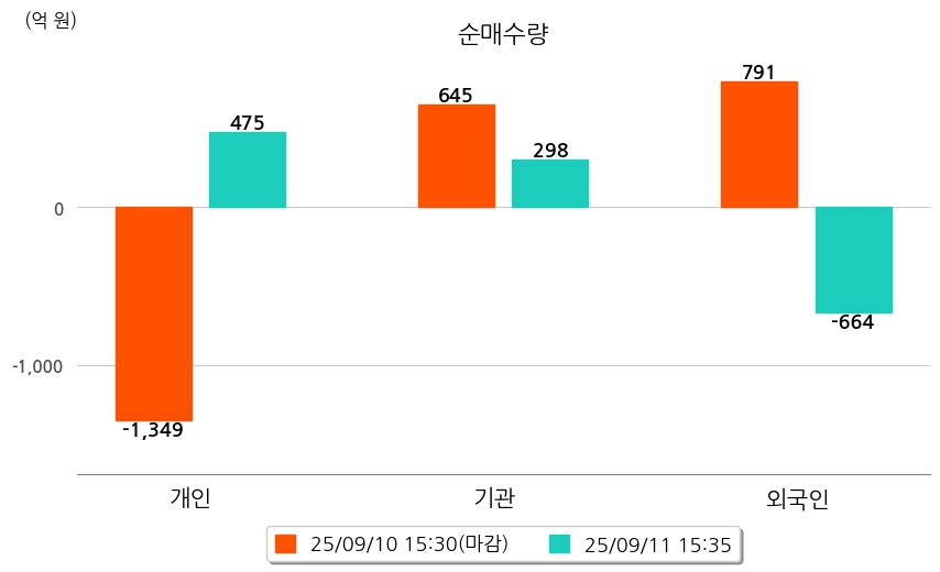 투자자별 동향을 살펴보면 기관은 298억 원 순매수했으며, 외국인은 664억 원 순매도했다. 개인은 475억 원 순매수했다.