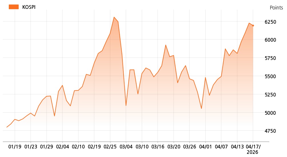 17일 오후 3시 코스피(6,191.92p, 34.13p, -0.55%)는 외국인 매도가 늘면서 하락세를 보이고 있다.
