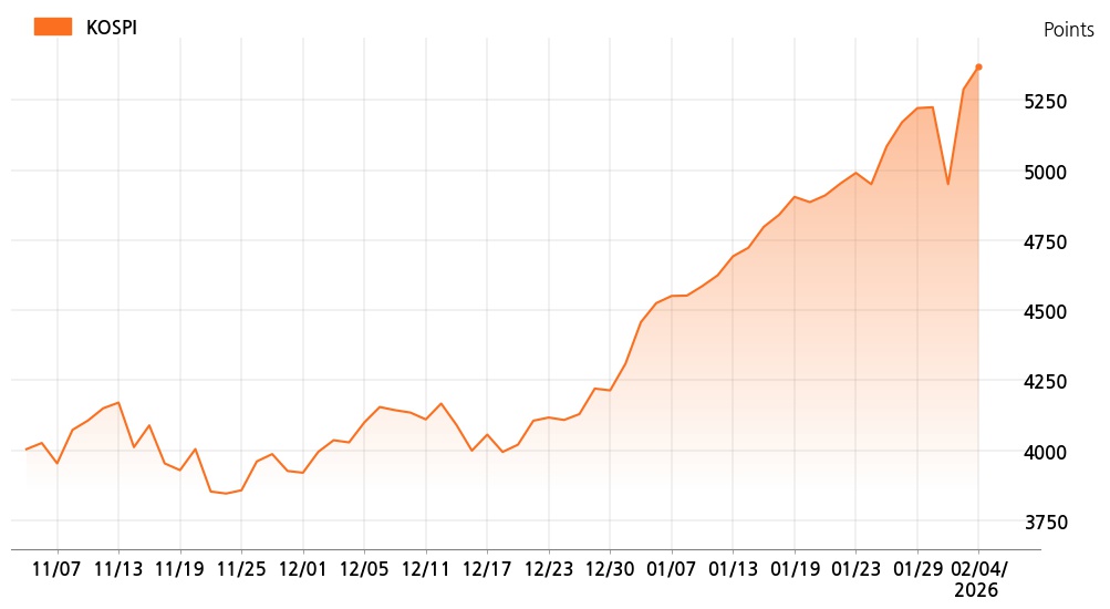 4일 오후 3시 코스피(5,371.10p, 83.02p, +1.57%)는 기관 매수가 늘면서 상승세를 보이고 있다.