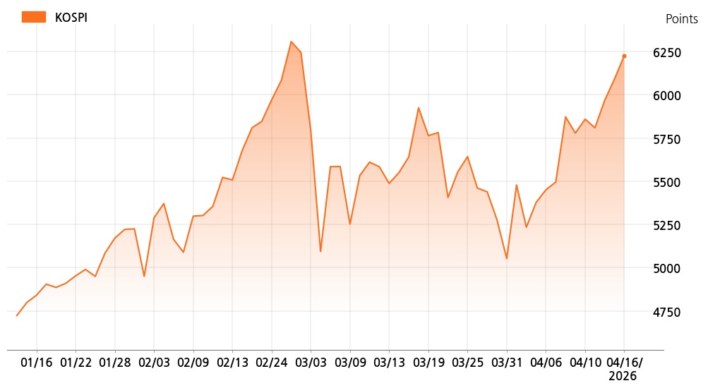 16일 오후 3시 코스피(6,226.05p, 134.66p, +2.21%)는 기관 매수가 늘면서 상승세를 보이고 있다.