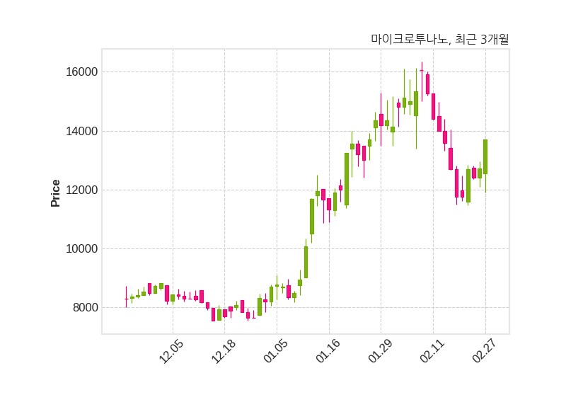 한편, 마이크로투나노의 14시 45분 현재주가는 13,700원으로 직전 거래일 대비 990원(+7.79%) 상승이며, 거래량은 78,206주이다.
