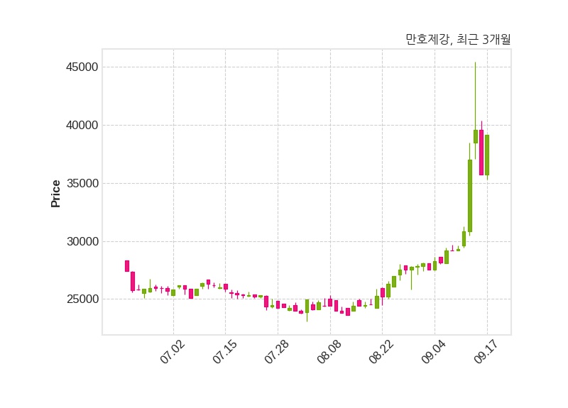 한편, 만호제강은 장 마감 이후 해당 기업공시를 발표했으며 오늘 종가가 39,150원, 거래량은 3,955주로, 직전 거래일 대비 3,450원(+9.66%) 상승했다.