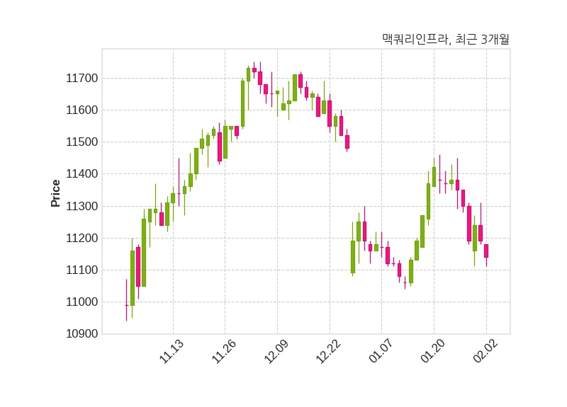 맥쿼리인프라는 특별관계자 미래에셋자산운용의 지분율이 7.35%에서 6.09%로 변동했다고 02일 공시했다. 한편, 맥쿼리인프라는 장 마감 이후 해당 기업공시를 발표했으며 오늘 종가가 11,140원, 거래량은 2,091,914주로, 직전 거래일 대비 50원(-0.45%) 하락했다.