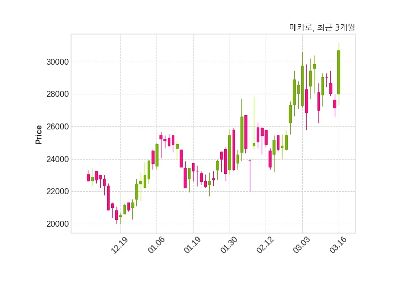 한편, 메카로는 장 마감 이후 해당 기업공시를 발표했으며 오늘 종가가 30,700원, 거래량은 143,696주로, 직전 거래일 대비 3,550원(+13.08%) 상승했다.