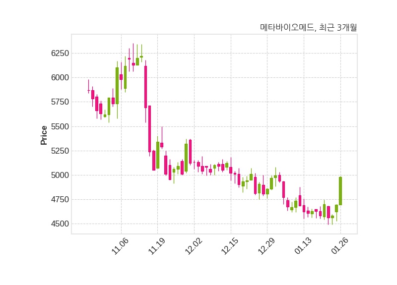 한편, 메타바이오메드의 14시 10분 현재주가는 4,980원으로 직전 거래일 대비 285원(+6.07%) 상승이며, 거래량은 491,127주이다.