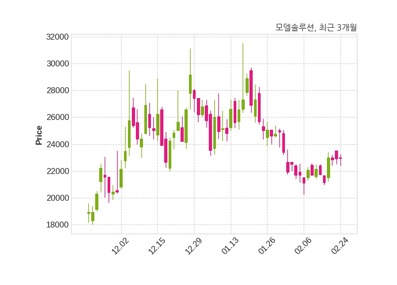한편, 모델솔루션은 장 마감 이후 해당 기업공시를 발표했으며 오늘 종가가 22,950원, 거래량은 60,749주로, 직전 거래일 대비 50원(+0.22%) 상승했다.