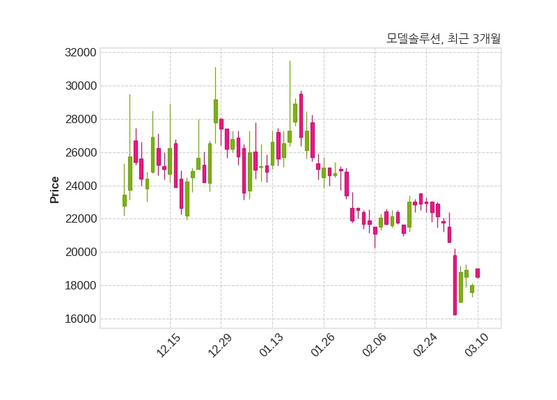 한편, 모델솔루션의 13시 36분 현재주가는 18,520원으로 직전 거래일 대비 510원(+2.83%) 상승이며, 거래량은 23,805주이다.