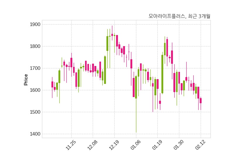 한편, 모아라이프플러스는 장 마감 이후 해당 기업공시를 발표했으며 오늘 종가가 1,542원, 거래량은 285,007주로, 직전 거래일 대비 21원(-1.34%) 하락했다.