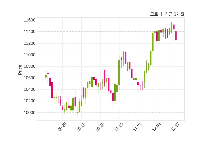 한편, 모토닉의 13시 31분 현재주가는 11,260원으로 직전 거래일 대비 180원(-1.57%) 하락이며, 거래량은 19,770주이다.