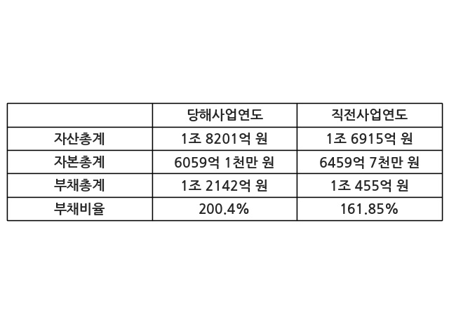 또한, 이번사업연도의 자산총계는 1조 8201억 원으로 직전사업연도 대비 7.61% 증가한 한편, 부채총계는 1조 2142억 원으로 16.14% 증가, 자본총계는 6059억 1천만 원으로 -6.2% 감소했다.