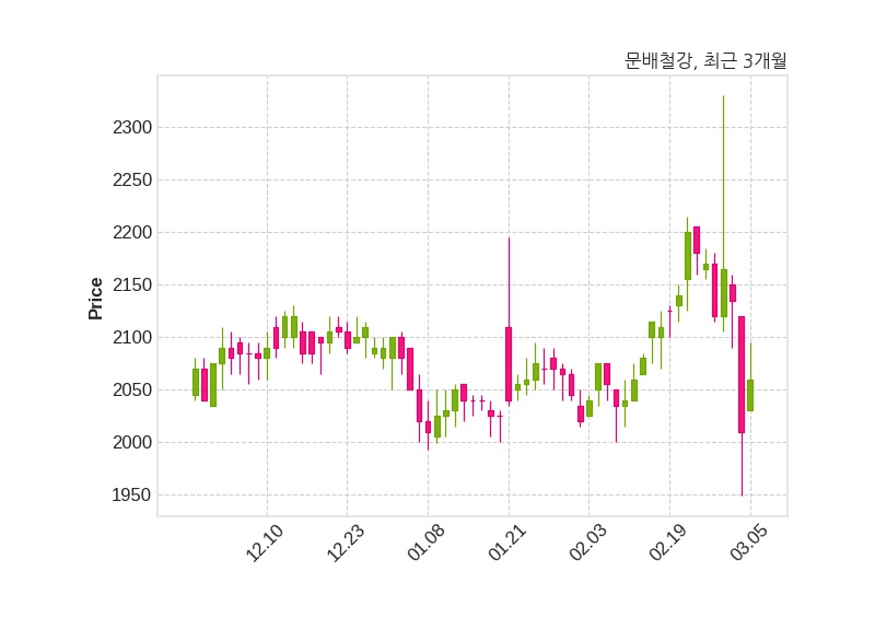 한편, 문배철강의 14시 22분 현재주가는 2,060원으로 직전 거래일 대비 50원(+2.49%) 상승이며, 거래량은 79,111주이다.