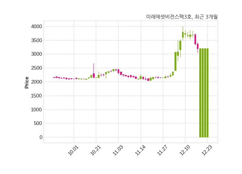 미래에셋비전스팩3호는 특별관계자 무림캐피탈의 지분율이 0.0%에서 7.56%로 변동했다고 23일 공시했다. 한편, 미래에셋비전스팩3호의 14시 51분 현재주가는 3,200원으로 직전 거래일 대비 변동없으며, 거래량은 0주이다.