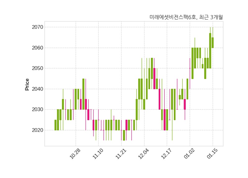 한편, 미래에셋비전스팩6호는 장 마감 이후 해당 기업공시를 발표했으며 오늘 종가가 2,065원, 거래량은 5,443주로, 직전 거래일 대비 2원(-0.1%) 하락했다.