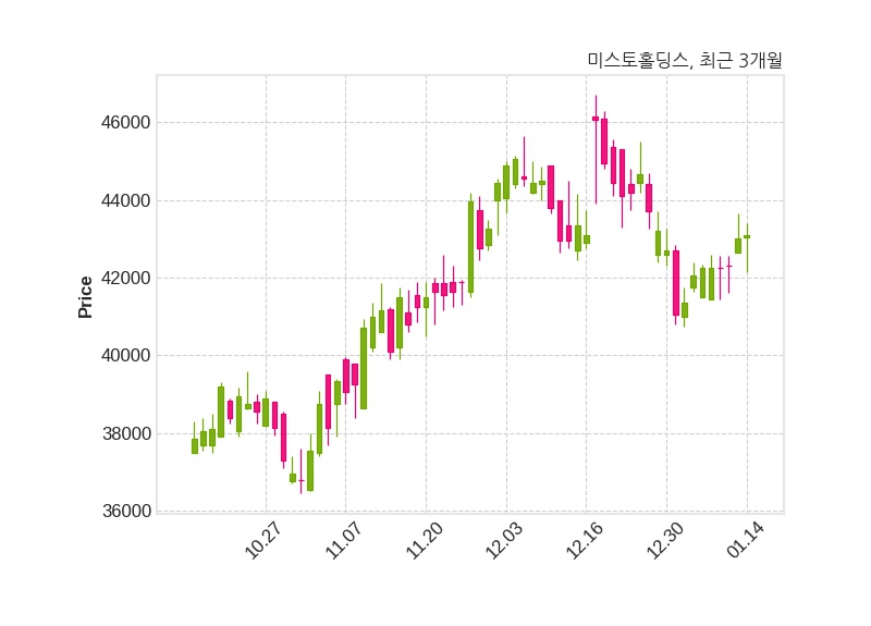 미스토홀딩스는 특별관계자 피에몬테의 지분율이 40.68%에서 35.94%로 변동했다고 14일 공시했다. 한편, 미스토홀딩스는 장 마감 이후 해당 기업공시를 발표했으며 오늘 종가가 43,100원, 거래량은 98,155주로, 직전 거래일 대비 100원(+0.23%) 상승했다.