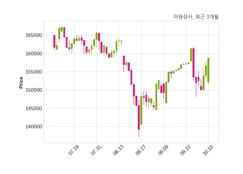 한편, 미원상사는 장 마감 이후 해당 기업공시를 발표했으며 오늘 종가가 158,700원, 거래량은 3,063주로, 직전 거래일 대비 2,000원(+1.28%) 상승했다.
