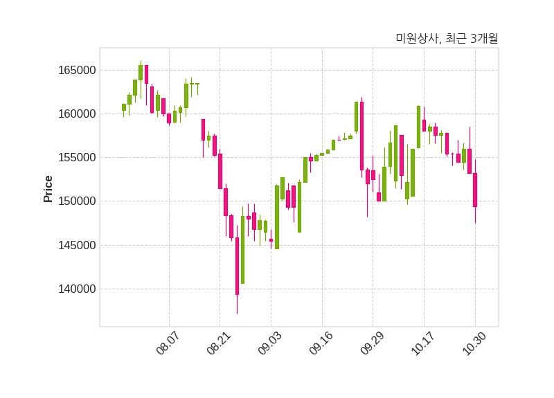 한편, 미원상사의 11시 42분 현재주가는 149,400원으로 직전 거래일 대비 3,800원(-2.48%) 하락이며, 거래량은 2,864주이다.