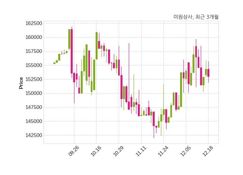 한편, 미원상사의 14시 35분 현재주가는 153,000원으로 직전 거래일 대비 1,300원(-0.84%) 하락이며, 거래량은 1,523주이다.
