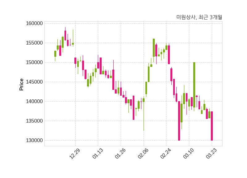 한편, 미원상사는 장 마감 이후 해당 기업공시를 발표했으며 오늘 종가가 130,000원, 거래량은 4,291주로, 직전 거래일 대비 7,400원(-5.39%) 하락했다.