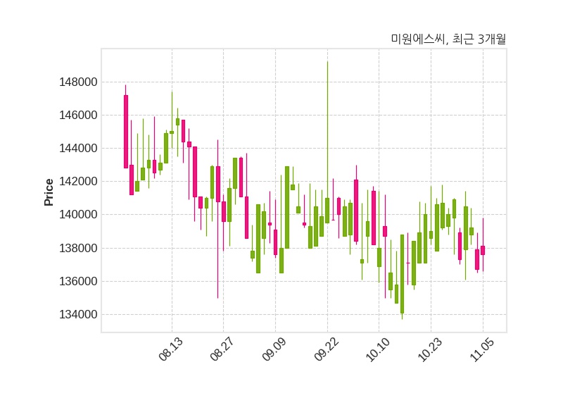 한편, 미원에스씨의 14시 39분 현재주가는 137,600원으로 직전 거래일 대비 900원(+0.66%) 상승이며, 거래량은 1,390주이다.