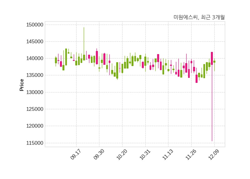한편, 미원에스씨의 14시 13분 현재주가는 139,300원으로 직전 거래일 대비 1,100원(+0.8%) 상승이며, 거래량은 1,002주이다.