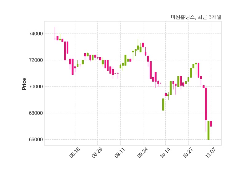 한편, 미원홀딩스의 14시 00분 현재주가는 67,000원으로 직전 거래일 대비 400원(-0.59%) 하락이며, 거래량은 235주이다.