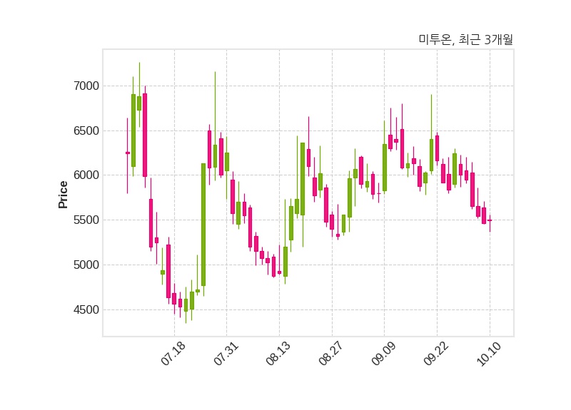 미투온은 특별관계자 한국증권금융의 지분율이 5.02%에서 4.8%로 변동했다고 10일 공시했다. 한편, 미투온의 13시 15분 현재주가는 5,490원으로 직전 거래일 대비 30원(+0.55%) 상승이며, 거래량은 576,551주이다.