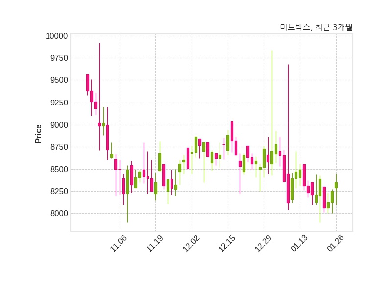 미트박스는 특별관계자 박진호의 지분율이 6.0%에서 5.02%로 변동했다고 26일 공시했다. 한편, 미트박스의 14시 59분 현재주가는 8,350원으로 직전 거래일 대비 100원(+1.21%) 상승이며, 거래량은 84,383주이다.