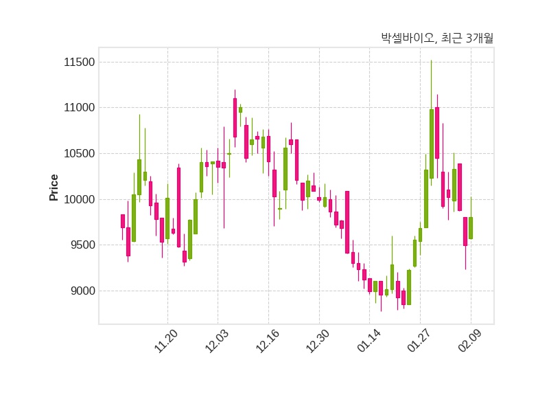 한편, 박셀바이오는 장 마감 이후 해당 기업공시를 발표했으며 오늘 종가가 9,800원, 거래량은 175,106주로, 직전 거래일 대비 310원(+3.27%) 상승했다.