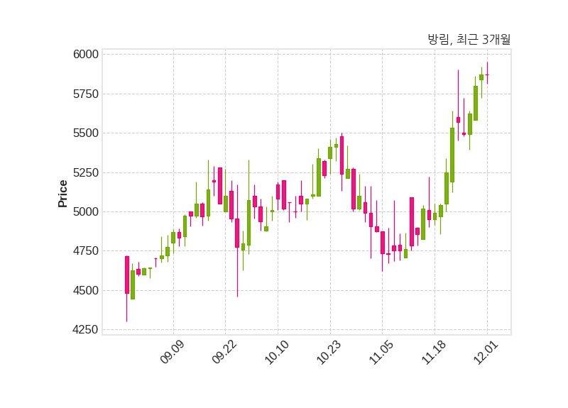 한편, 방림의 14시 05분 현재주가는 5,870원으로 직전 거래일 대비 변동없으며, 거래량은 73,833주이다.
