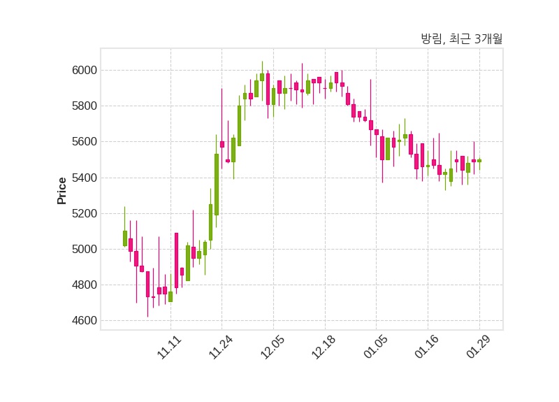 한편, 방림은 장 마감 이후 해당 기업공시를 발표했으며 오늘 종가가 5,500원, 거래량은 113,021주로, 직전 거래일 대비 10원(+0.18%) 상승했다.