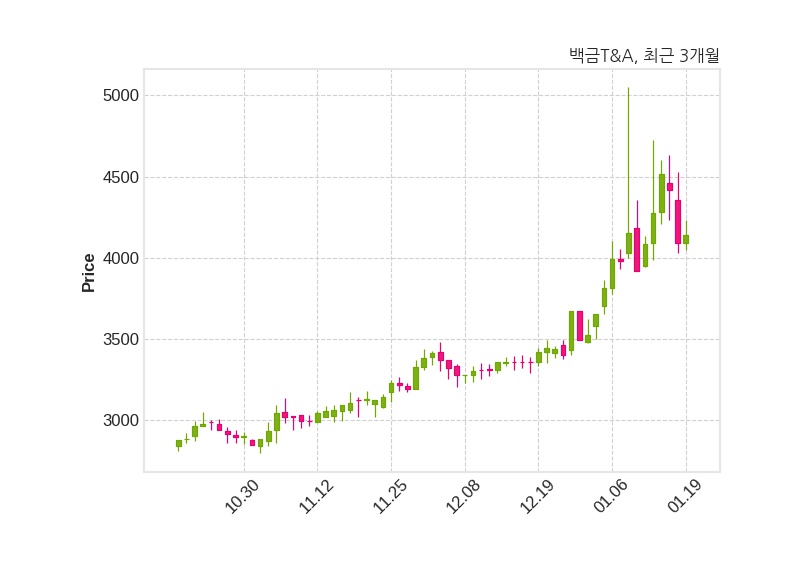 백금T&A은 특별관계자 임학규의 지분율이 25.44%에서 25.51%로 변동했다고 19일 공시했다. 한편, 백금T&A의 13시 33분 현재주가는 4,140원으로 직전 거래일 대비 50원(+1.22%) 상승이며, 거래량은 118,623주이다.