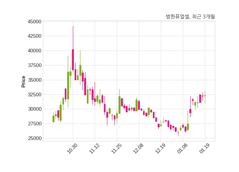 한편, 범한퓨얼셀은 장 마감 이후 해당 기업공시를 발표했으며 오늘 종가가 32,350원, 거래량은 167,767주로, 직전 거래일 대비 150원(+0.47%) 상승했다.
