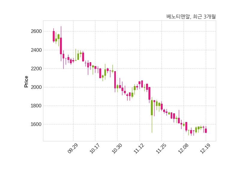 베노티앤알은 특별관계자 라미쿠스의 지분율이 15.59%에서 14.37%로 변동했다고 19일 공시했다. 한편, 베노티앤알은 장 마감 이후 해당 기업공시를 발표했으며 오늘 종가가 1,510원, 거래량은 65,631주로, 직전 거래일 대비 59원(-3.76%) 하락했다.