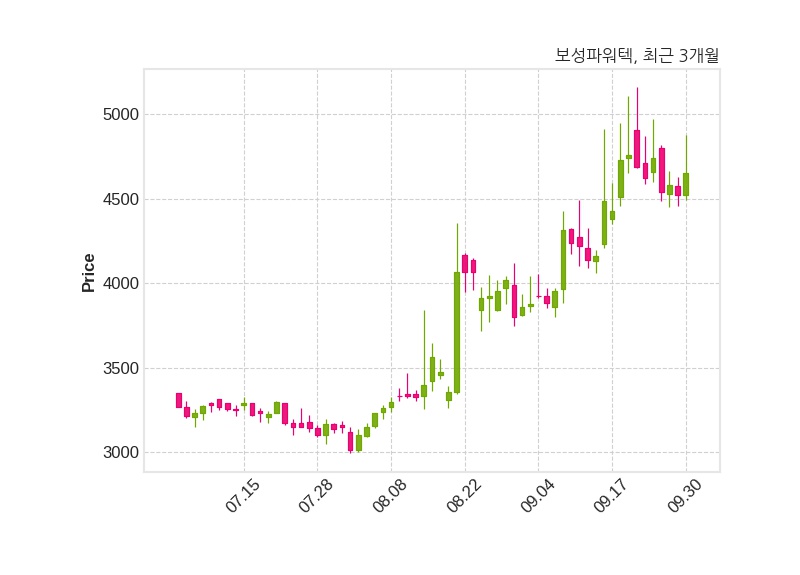 한편, 보성파워텍은 장 마감 이후 해당 기업공시를 발표했으며 오늘 종가가 4,655원, 거래량은 2,426,513주로, 직전 거래일 대비 135원(+2.99%) 상승했다.