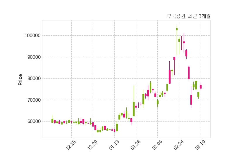 부국증권은 특별관계자 케이프투자증권의 지분율이 5.82%에서 9.64%로 변동했다고 10일 공시했다. 한편, 부국증권의 13시 51분 현재주가는 75,400원으로 직전 거래일 대비 1,800원(+2.45%) 상승이며, 거래량은 20,045주이다.
