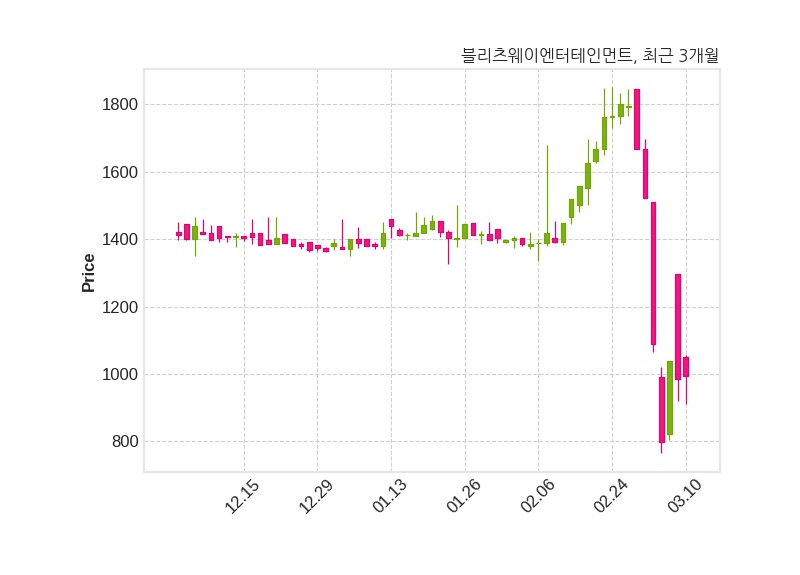 블리츠웨이엔터테인먼트는 특별관계자 배용준의 지분율이 8.63%에서 10.8%로 변동했다고 10일 공시했다. 한편, 블리츠웨이엔터테인먼트의 14시 33분 현재주가는 995원으로 직전 거래일 대비 9원(+0.91%) 상승이며, 거래량은 369,033주이다.