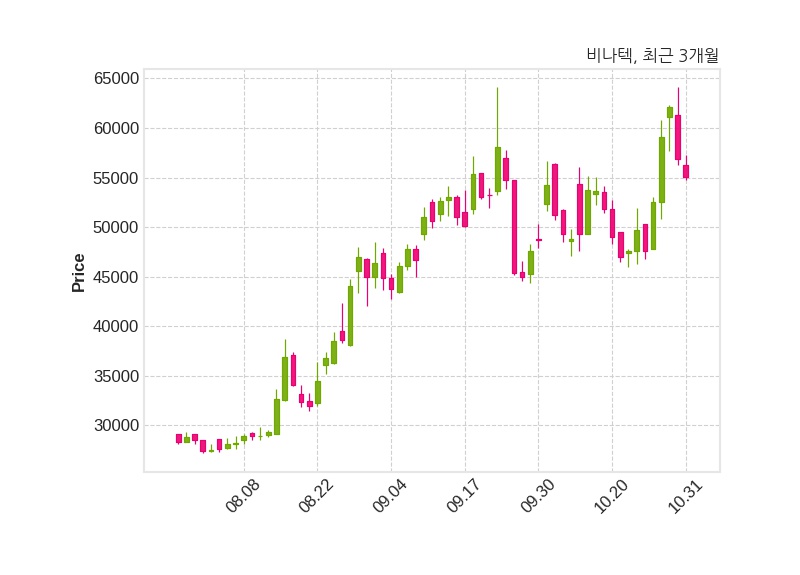 한편, 비나텍은 장 마감 이후 해당 기업공시를 발표했으며 오늘 종가가 55,100원, 거래량은 201,997주로, 직전 거래일 대비 1,800원(-3.16%) 하락했다.